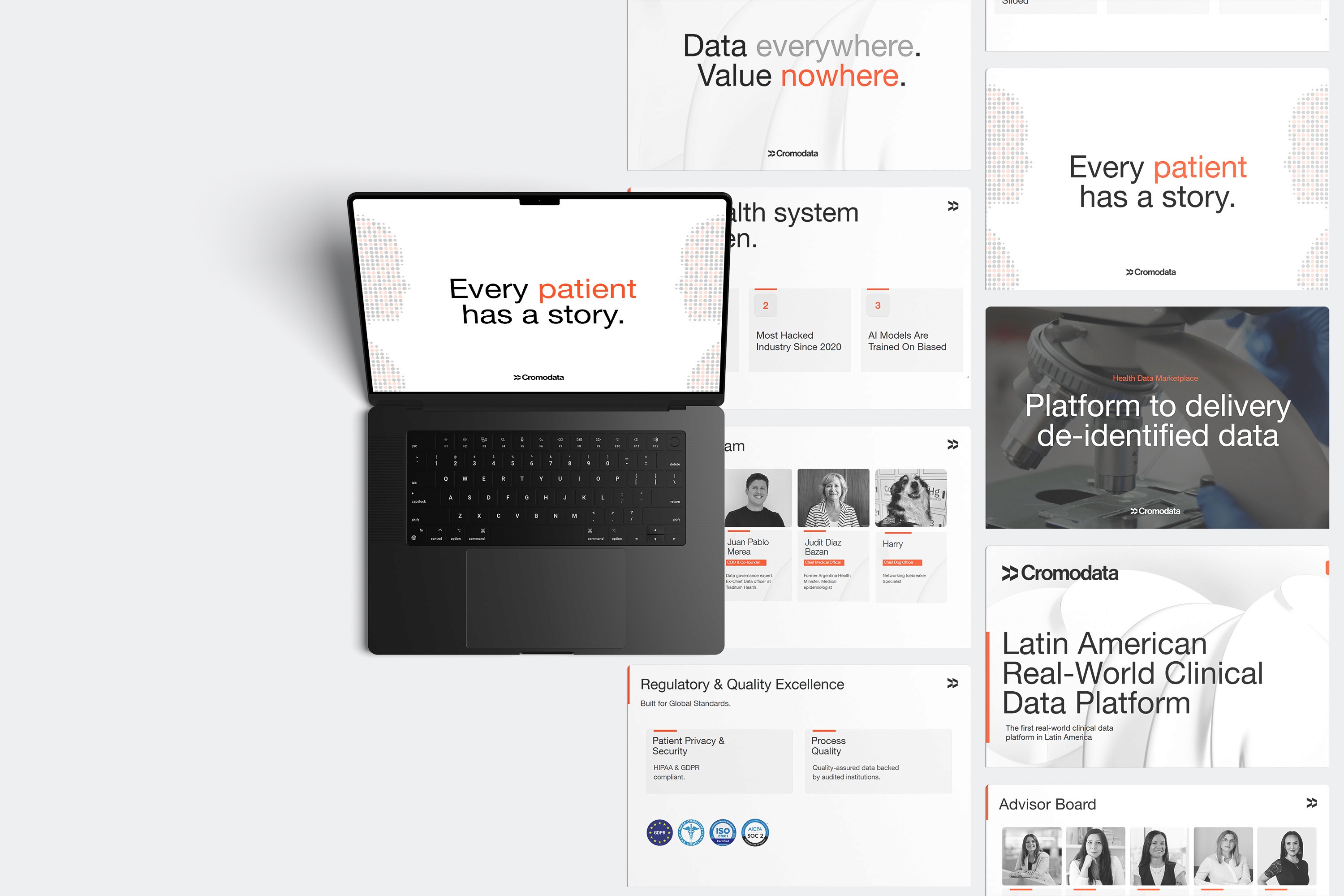 Cromodata connects clinical data from Latin American healthcare institutions with global research, AI, and life sciences companies. The project involved translating a regulated, high-complexity business model into a scalable digital ecosystem. We aligned strategy, design, and systems into a single framework to support long B2B decision cycles and reinforce the company’s core purpose: improving clinical outcomes through data.